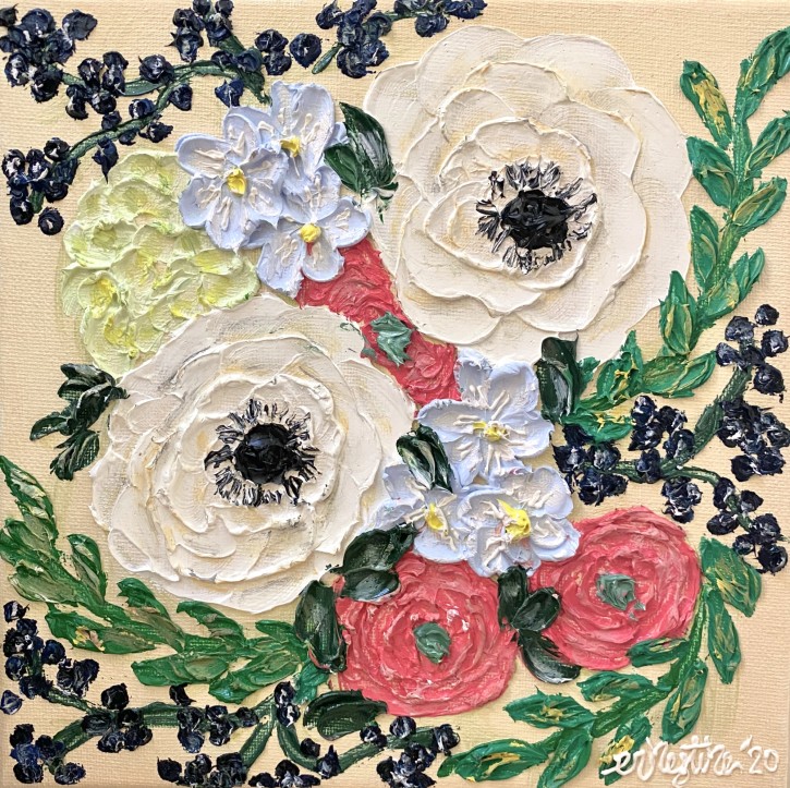 Eirene is the goddess of peace. As Ernestine reimagines the goddess of peace, she carefully chose contrasting light and dark color palettes to balance the overall image, which creates a beautiful floral representation of a peaceful Sunday morning. While this painting rests on your walls or desks, it reminds you of the beauty found in silence and the best form of happiness - inner peace.