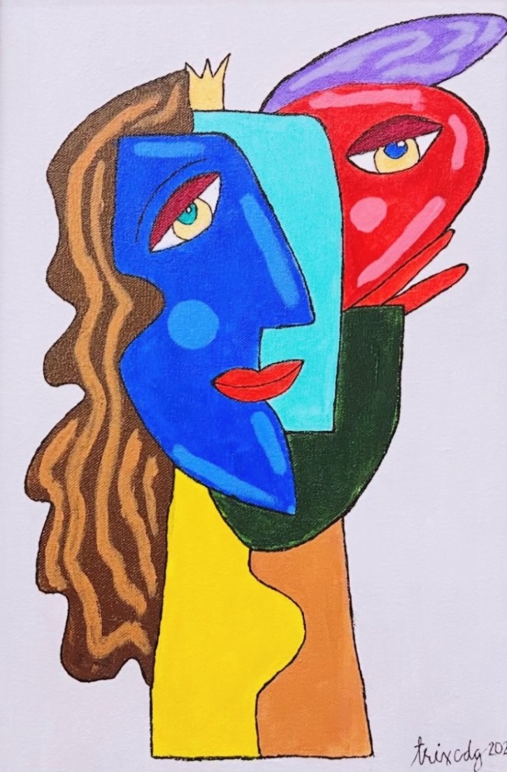 She also enjoys working in abstract cubism, where she explores the idea of perspective. By breaking down forms and reassembling them in new ways, I invite viewers to see that life, much like art, is experienced differently depending on where we stand and how we look.