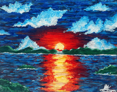 "Sunset on Something" tackles the gradual shift and transition. It is like looking at those moments of letting go and moving on. The way the sun slowly dips and paints that intense, shimmering path across the water.