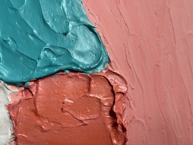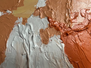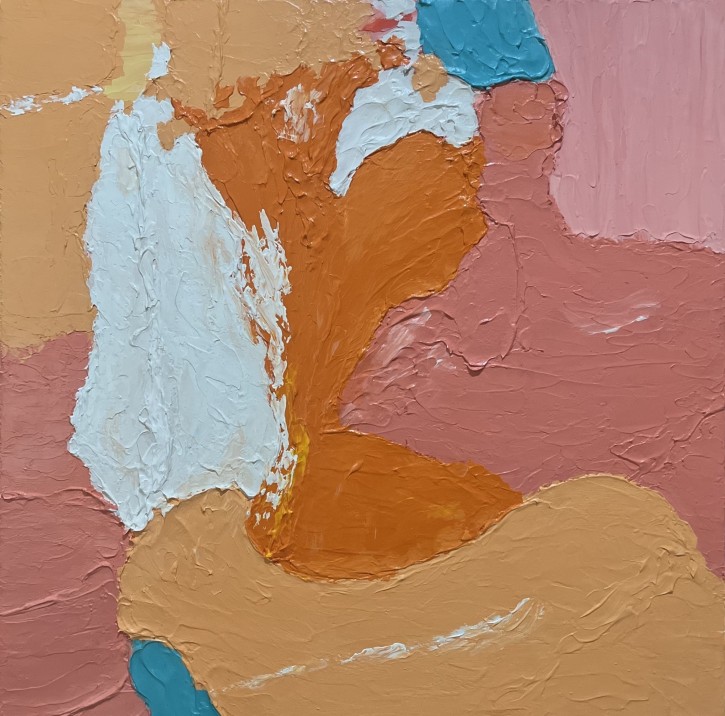 With warm earthy tones of orange and pink blended by textured overlays, a sense of calmness and relaxation is evoked while the layered brushstrokes introduce depth and organic motion.