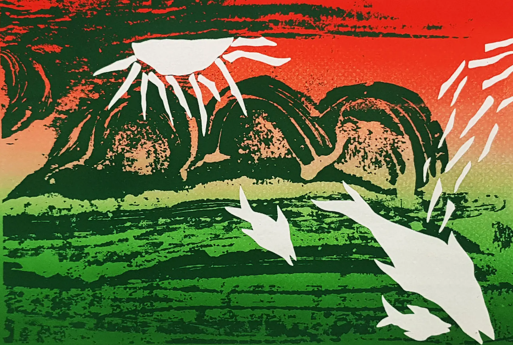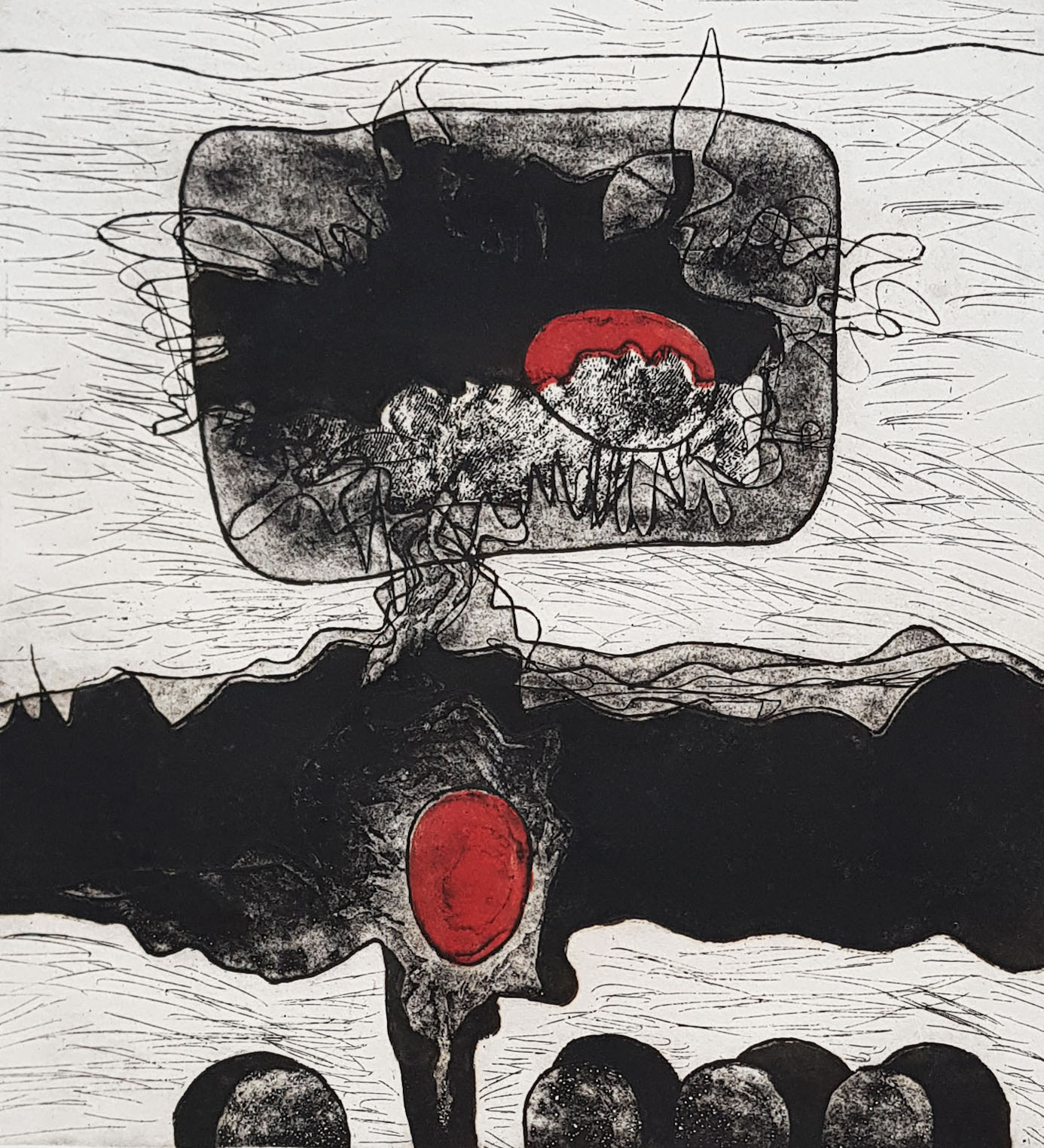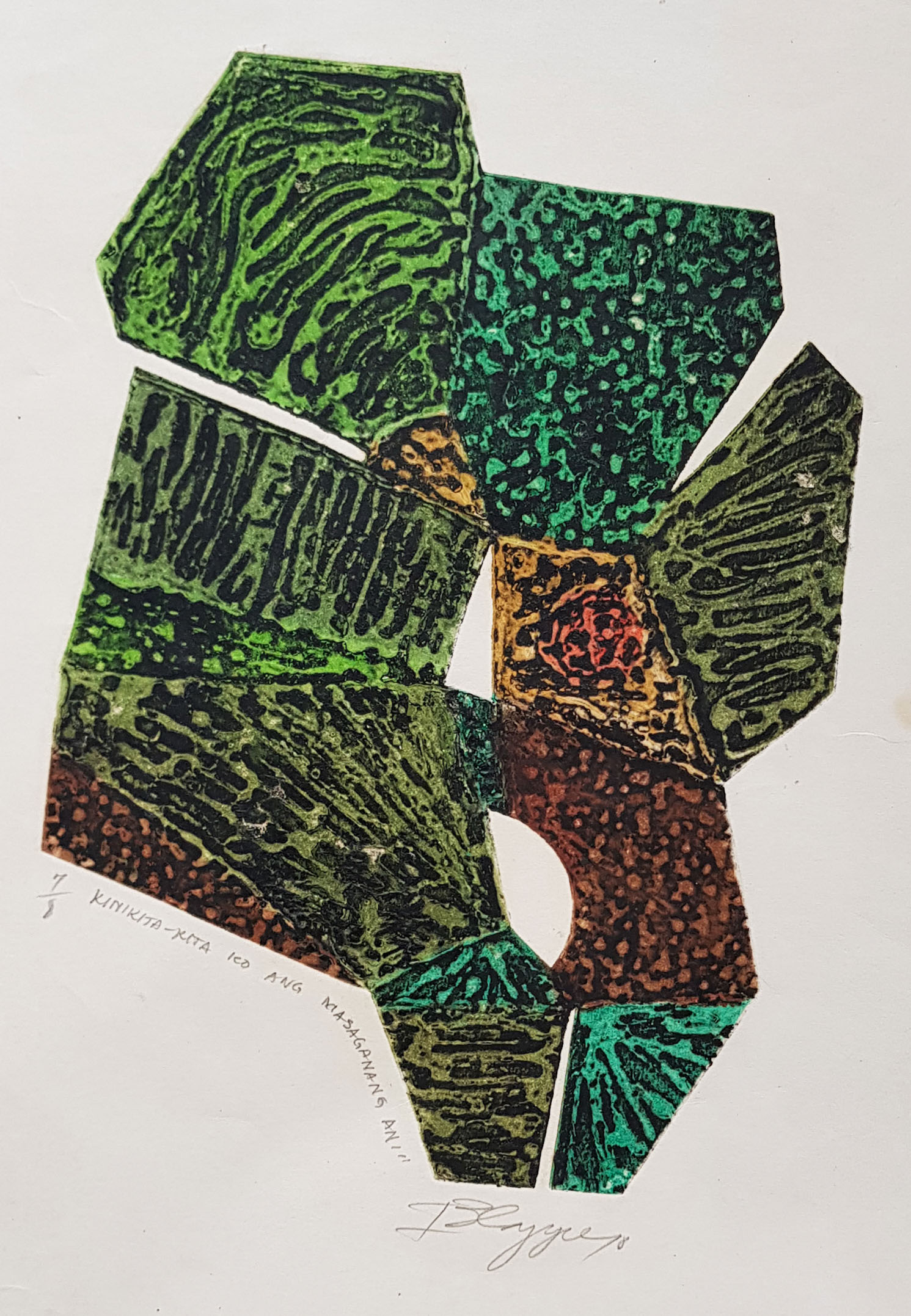 “The Abstractions of Cajipe Endaya” features abstracted interpretations of objects familiar to Filipinos, such as salted eggs, rice paddies, fiesta buntings, indigenous patterns, and rural landscapes. These pieces were deconstructed, abstracted, and then simplified using the meticulous printmaking processes from etching to aquatint and collagraph.